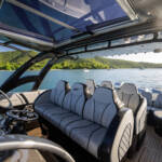 The sleek and durable design includes high-end finishes, comfortable seating, and plenty of space for enjoying the sun, all while delivering exceptional speed and stability on the water.